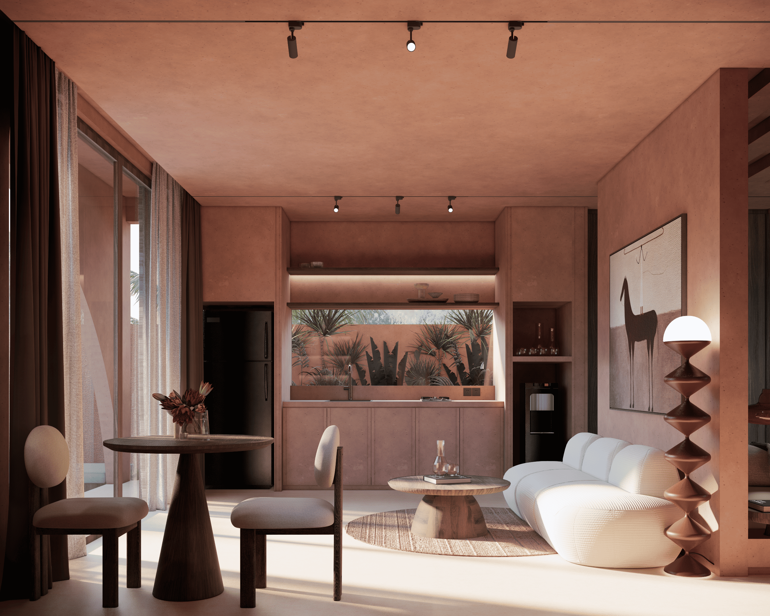 28 visually iconic villas with reception, coworking, gym, sauna, and ice bath.